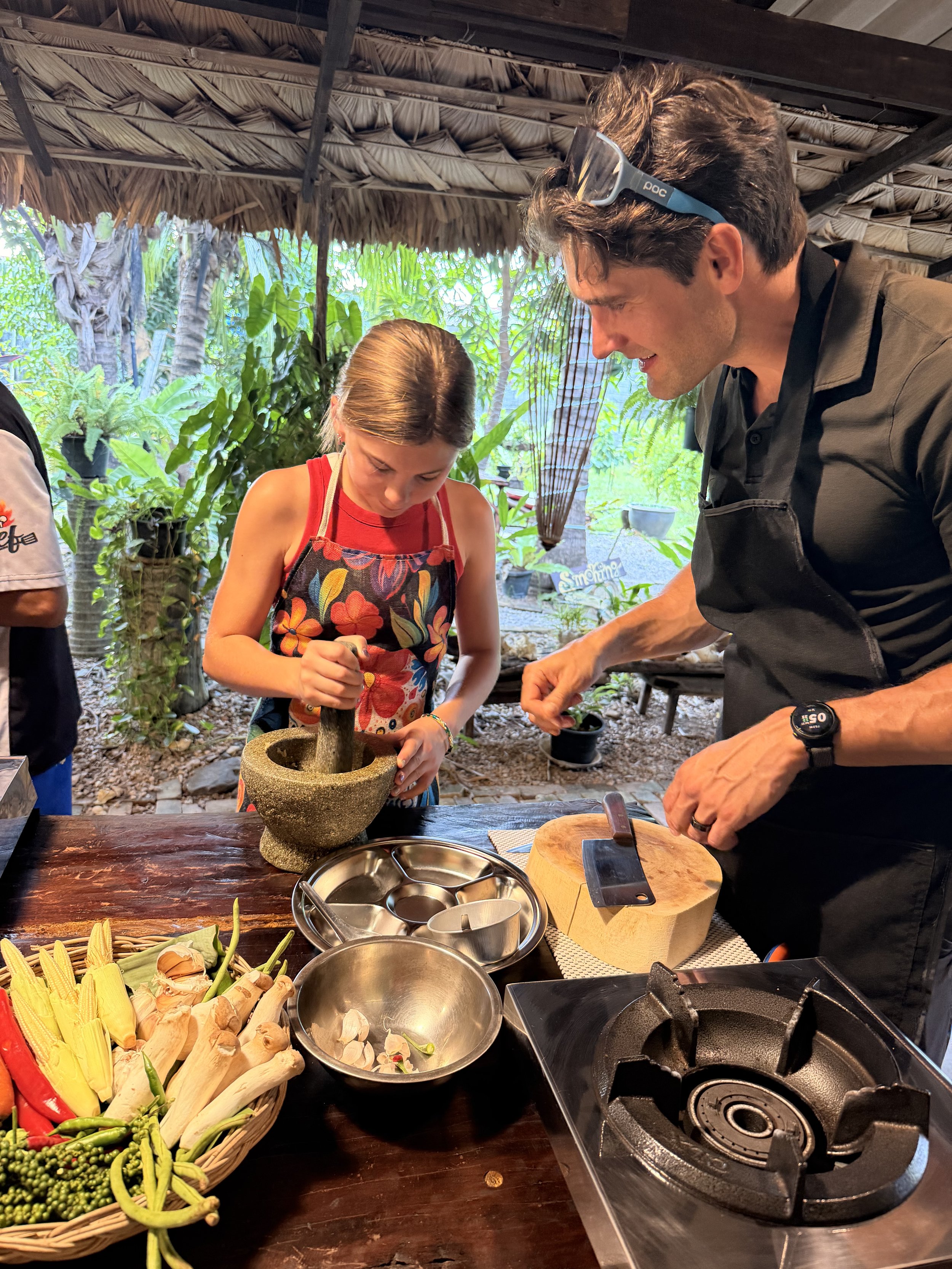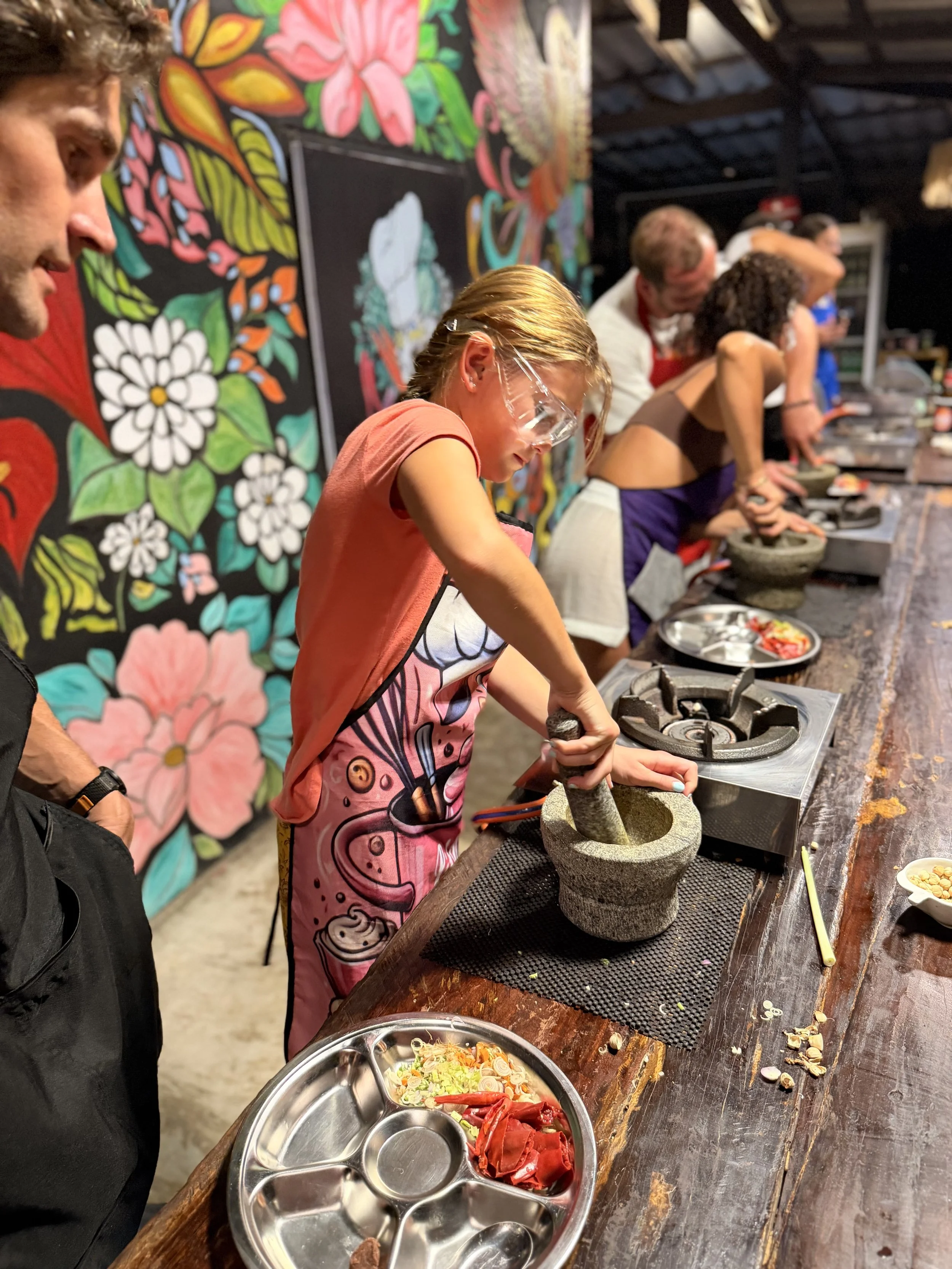We never felt neglected or rushed, and they were incredibly accommodating and enthusiastic about having the girls there. One of the highlights was that Cosette and Celly got to make curry paste completely from scratch. Even better, after all their hard work, they got to sit down and enjoy the meal they cooked.